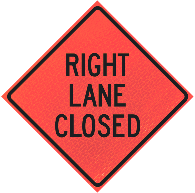 RIGHT LANE CLOSED (W20-5R)n48″ Marathon™ Roll-Up Sign